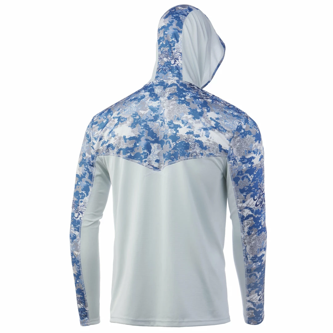 The Huk ICON X Tide Change Hoodie is the most technically advanced performance fishing shirt designed for hardcore anglers. This breathable material spreads moisture over a larger surface area, creating a rapid drying effect that cools the body after coming into contact with perspiration. The synthetic fibers allow air to pass through the shirt and contain a hydrophobic coating that transports sweat to drier areas, away from the skin.